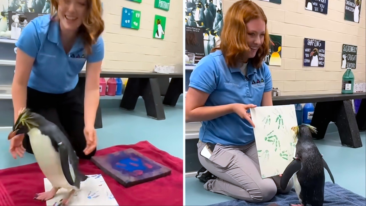 Rockhopper Penguin Makes Adorable Art With Her Feet and Nose to Raise Money for Animal Conservation