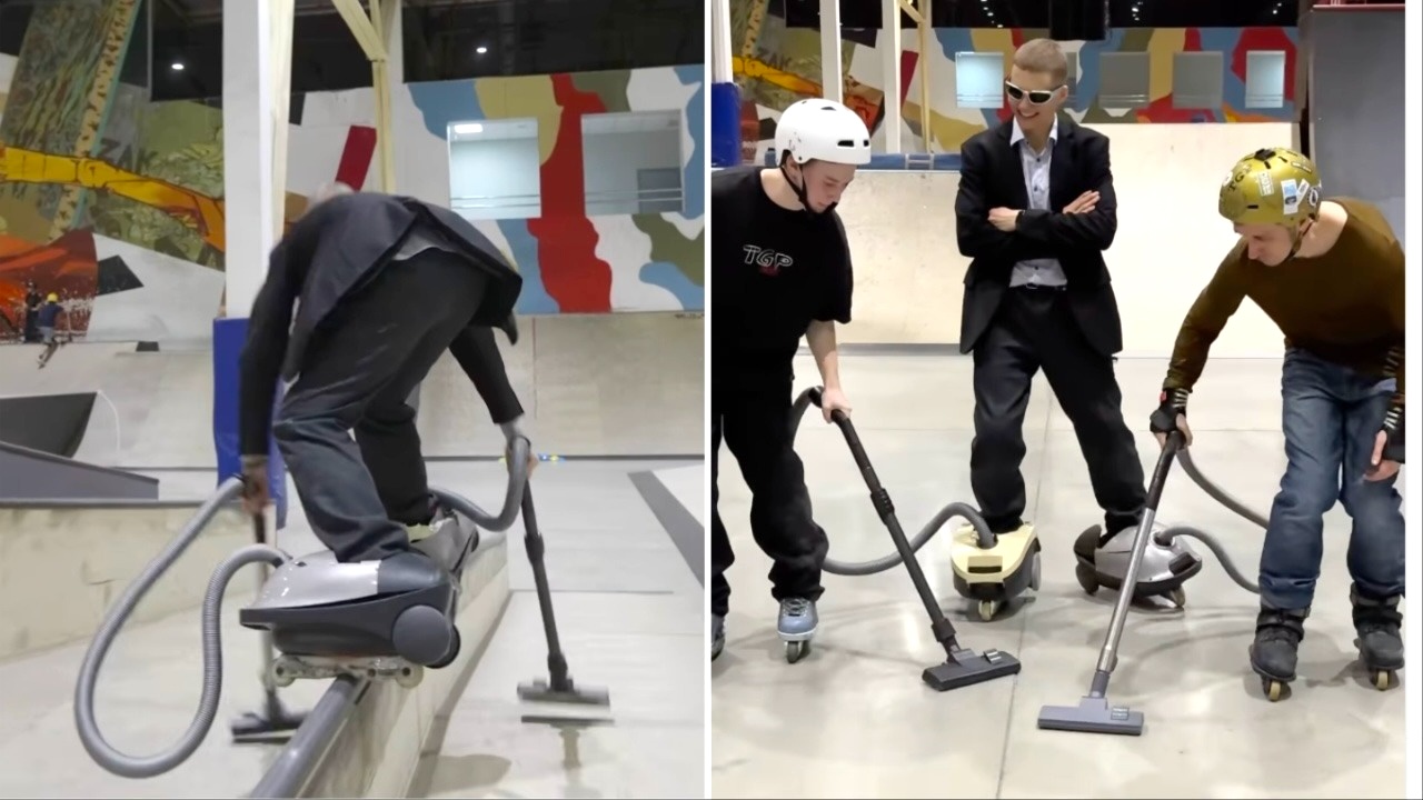 Skater Turns Vacuum Cleaners Into Inline Skates